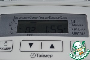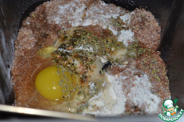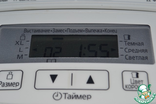Закладываем ингредиенты в ведерко ХП, согласно инструкции. У меня сначала дрожжи, мука, сухие продукты и сверху жидкость.
