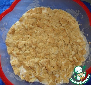 Засыпаем измельченным печеньем и ставим в холодильник для застывания на 5-6 часов. -