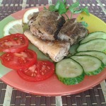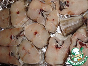 У меня заранее приготовленная, нарезанная на порционные куски рыба. Задачей было только разморозить, промыть и обсушить непосредственно перед самой готовкой.