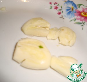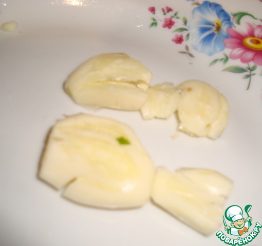 Чеснок очистить и подавить, так он сильнее и ярче раскроет свой аромат.