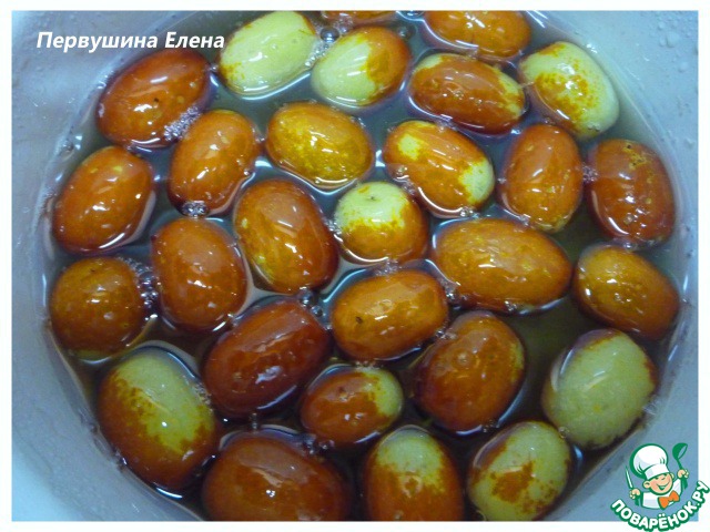 Сортирую плоды по степени зрелости и размеру, удаляю плодоножки, отбраковываю поврежденные, мою, даю стечь воде и накалываю вилкой.