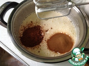 • Добавляем какао, кефир и кофе, взбиваем