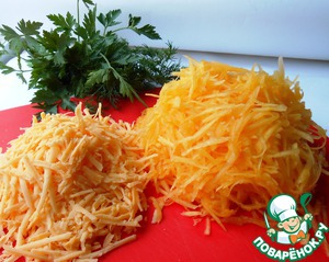 Тыкву очищаем от семян и корки. Тыкву и сыр натереть на крупной терке.