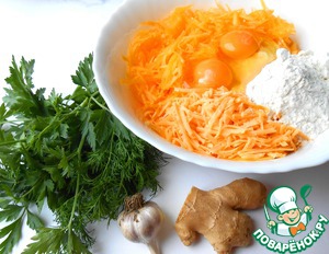 Смешиваем тыкву, сыр, добавляем яйца, муку, нарезанную зелень. У меня была петрушка и укроп, думаю, базилик тоже был бы к месту. Добавить измельченные чеснок и имбирь (я просто натерла на мелкой терке), посолить, поперчить, тщательно перемешать…