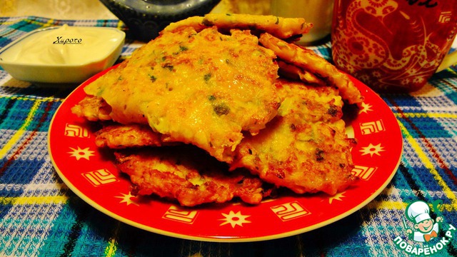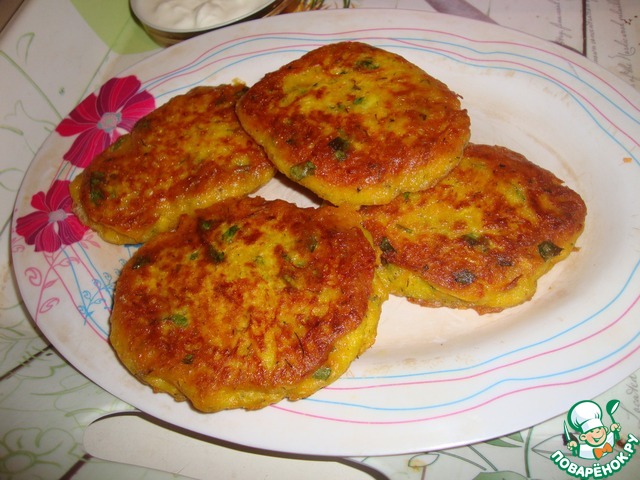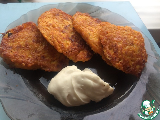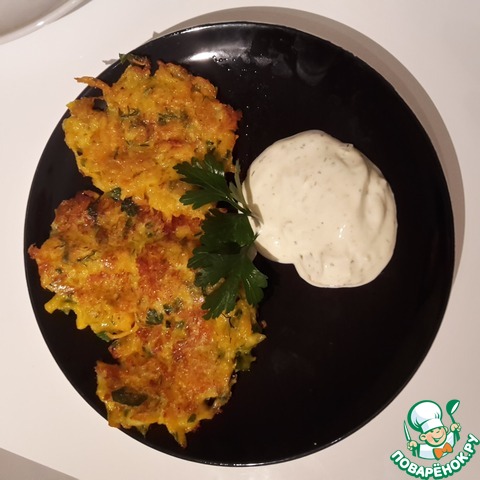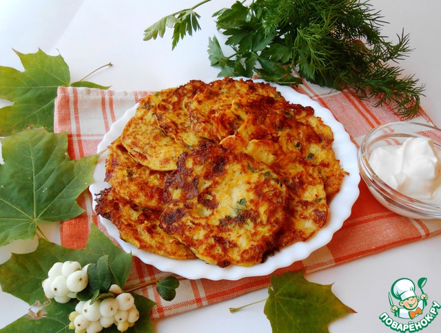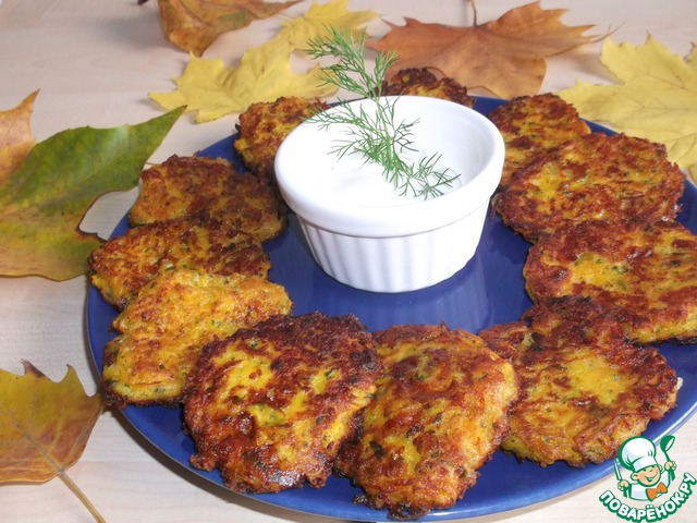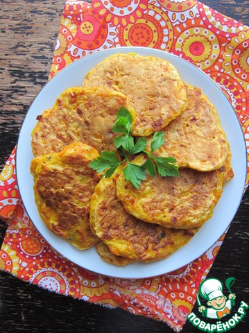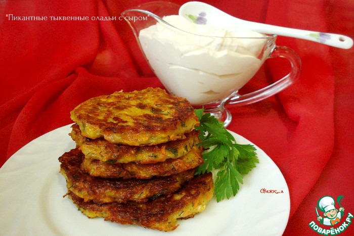 Рецепт «Пикантные тыквенные оладьи с сыром»: