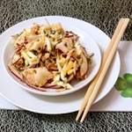 Салат с пресервами из морепродуктов с яйцом и луком.