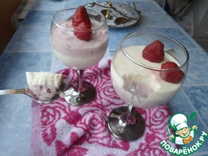 Теперь распределяем слоями в креманки, бокалы, либо фужеры. Заливаем один слой, оставляем в холодильнике до застывания, затем на него второй слой.