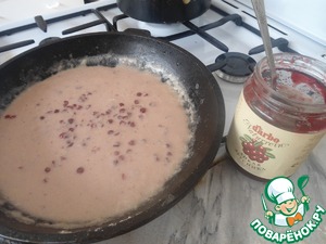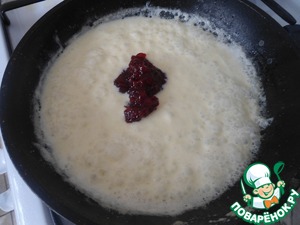 В самом конце добавить брусничный соус, немного подсолить.
