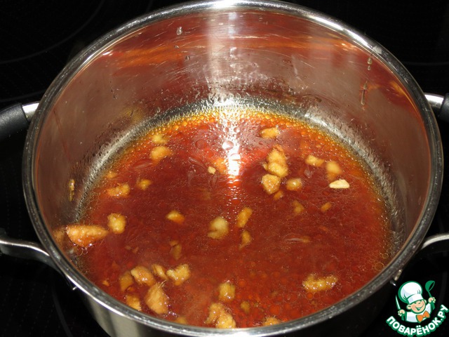 • Смешать мед, соевый соус, нарезанный имбирь, сок лимона, слегка нагреть для получения однородной консистенции.
