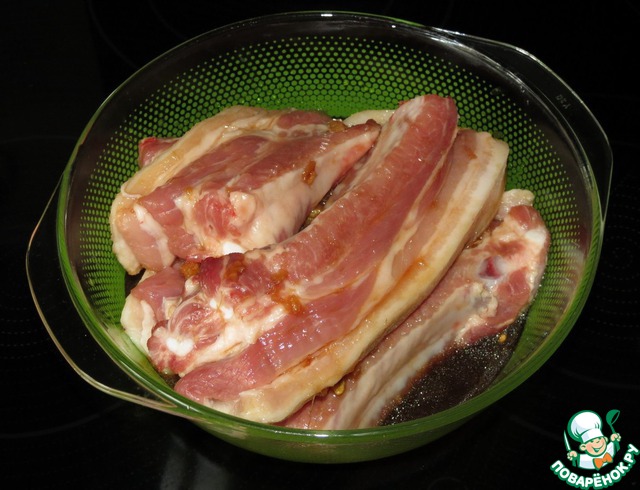 • Потребуется: Свинные ребрышки, соус “Дикая брусника” от Дарбо, мед, соевый соус, имбирь, лимон, перец, лук, масло, соль.