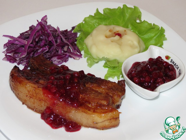 Рецепт «Запеченые свиные ребрышки с брусничным соусом»: