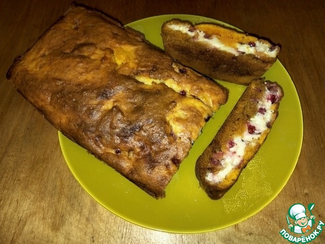 Рецепт «Тыквенный кекс с творожно-брусничной прослойкой»: