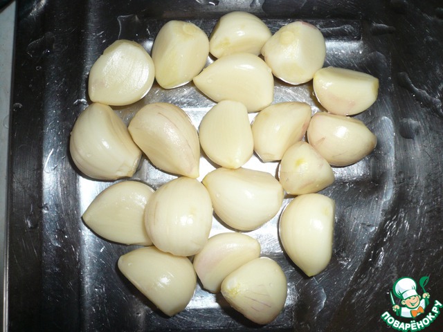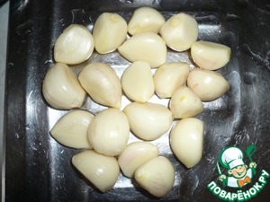 Тем временем, пока варятся тыква с морковкой, почистим чеснок...