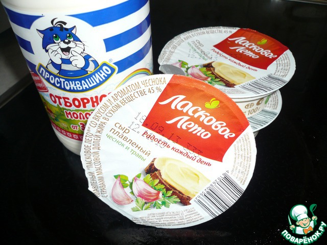 Идём дальше, берём молоко и сырки плавленные. Вот они у меня какие.