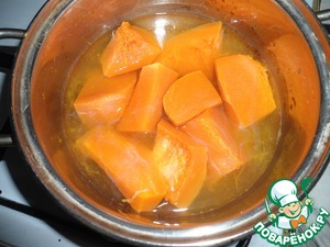 Поставить вариться тыкву в небольшом количестве воды до мягкости.