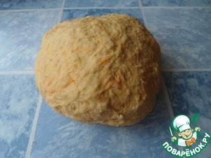 К тыквенной основе добавить муку, вымесить тесто. Количество муки в описании примерное, добавляйте, сколько возьмет тесто.