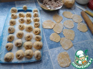Теперь начинаем лепить пельмешки. Здесь я не стала описывать весь процесс, наверно, каждому и так понятно, как это делается.=)))
