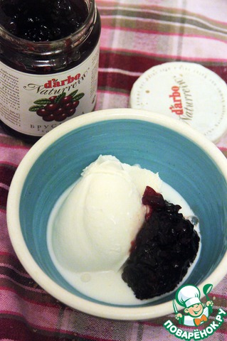 Приготовим крем - соединим маскарпоне, сливки (я брала не жирные, чтобы крем получился более легкий) и брусничный джем. Взобьем до однородного состояния.