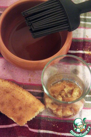 Для пропитки бисквита и каштанов я использовала смесь кленового сиропа и коньяка.