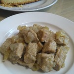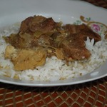 Пока мясо закипает, чистим лук и нарезаем четверть кольцами. Добавляем к закипевшему мясу, накрываем крышкой. Можно немного добавить огня, чтобы мясо закипело вместе с луком, а потом сделать маленький огонёк и забыть о нём примерно на час. Хотя на протяжении этого часа всё же загляните пару раз в кастрюлю, чтобы не выкипела вся жидкость, а то мало ли что бывает, может огонь был недостаточно маленький, или мясо суховатое. Если через час вся жидкость выкипела, добавьте воды так, чтобы она покрыла мясо, доведите до кипения, сделайте маленький огонёк и посолите. Если жидкости было достаточно, тогда просто посолите. И опять забудьте о нём примерно на час. Хотя всё-таки приглядывайте за ним иногда, не выкипела ли жидкость. Если выкипела, добавьте немного воды. Если не уследили, и мясо немного пригорело, не расстраивайтесь, добавьте воды, тогда мясо будет со вкусом "шашлычка", как говорит мой муж в такой ситуации. Но обычно, если огонь небольшой и мясо не размороженное, а свежее, то воды вам вообще не придётся добавлять, как у меня было в этом случае.