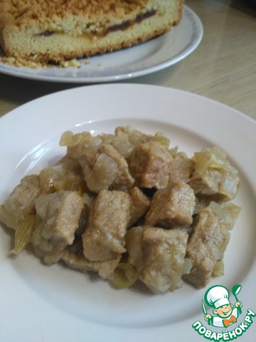 Я не знаю, достоверно ли этот рецепт принадлежит к еврейской кухне, но под таким названием он попал ко мне от свекрови. Как только мы с мужем поженились, он меня попросил узнать у его мамы рецепт этого мяса и приготовить ему. Так мясо готовила ещё его бабушка. Мясо получается мягкое, сочное, ароматное, по типу "советской" тушенки. Это ещё один рецепт из арсенала нашей семейной диетической кухни.