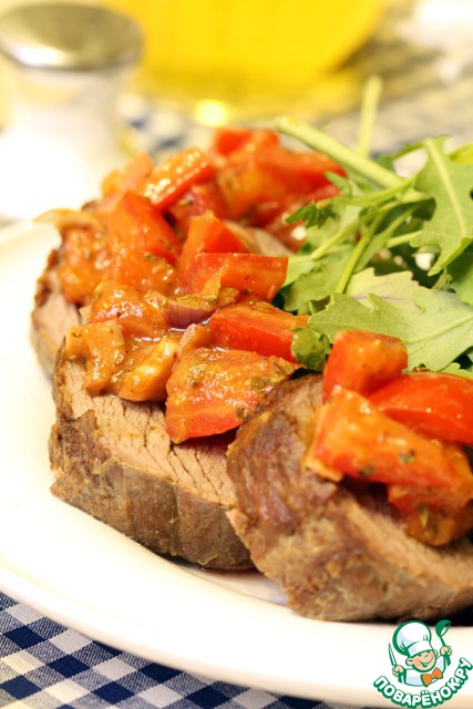 Рецепт «Жареная говяжья вырезка с томатной заправкой с эстрагоном»: