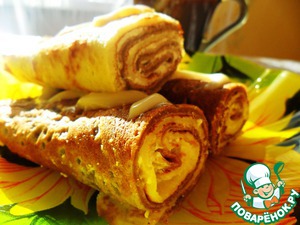 Ингредиенты для «Двухцветные блинные рулетики»: