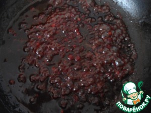 Начнем с приготовления соуса. Основные составляющие - брусничный соус Darbo и гранатовый сок.