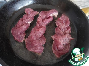 Рецепт «Коса-мясная краса под гранатово-брусничным соусом с карамелизированным луком»: