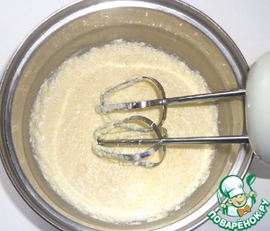 Яйца взбить с размягчённым сливочным маслом и сахаром.