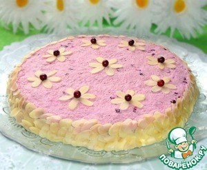 Торт оформить миндальными лепестками и брусникой. Готово!