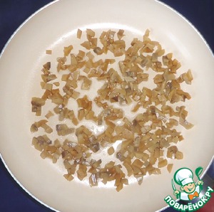 Сначала приготовим начинку, для этого грибы нужно мелко нарезать и обжарить на растительном масле.