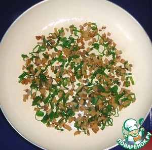 Добавить мелко нарезанный зелёный лук, посолить и перемешать.