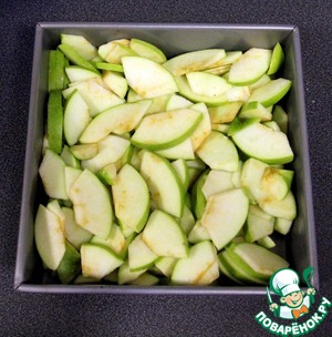 Яблоки нарезать кусочками и положить в формы для выпекания.
