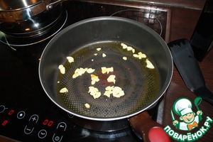 Чеснок нарезать дольками и обжарить на оливковом масле.