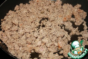 Фарш обжариваем до готовности, помешивая. Посолить и поперчить.
