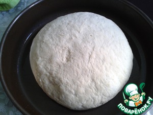 • Противень, в котором будем выпекать, хорошо смазываем оливковым маслом. Помещаем туда наш колобок.