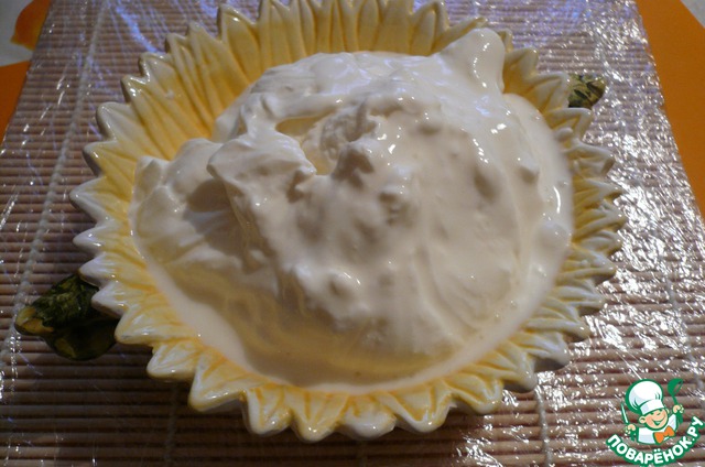 Положить сверху тарелочку с грузом и поставить всю эту "конструкцию" в холодильник на пару дней. Время от времени сливаем сыворотку, которую, кстати, тоже можно использовать. В тесто для блинчиков, например. -