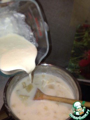 Теперь, когда тыква стала мягкой, нужно смешать муку (1/4 стакана) и дополнительную порцию молока (1/4 стакана). Все тщательно перемешать, чтобы не было комочков, и влить тоненькой струйкой в будущий соус.
