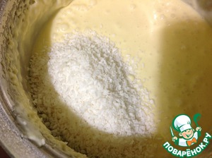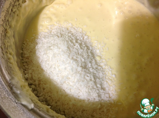 Добавляем кокосовую стружку и перемешиваем лопаткой