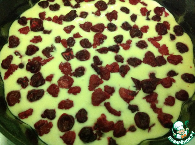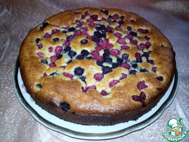 Тесто выливаем в смазанную форму, сверху выкладываем ягоды и ставим в предварительно разогретую духовку - при 180*С 30-40 мин.