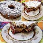 Сверху пирог можно украсить сахарной пудрой или лучше взбить 200 гр сметаны с 4 ст. л. сахарной пудры, или загуститель сливок взбить с 200 мл сливок 33% жирности. Я не успеваю этого сделать, так как мои любимые не дают остыть пирогу, и нанести крем, как все это съедается в один присест)))