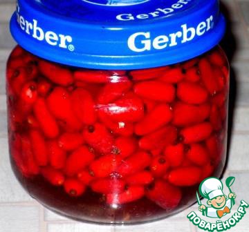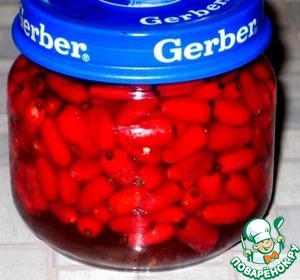 • Барбарис распределить по чистым сухим баночкам. Лучше использовать небольшие, мне удобно в баночках из-под детского питания (ок. 80 мл)