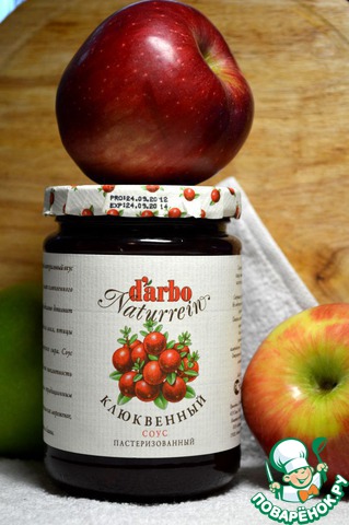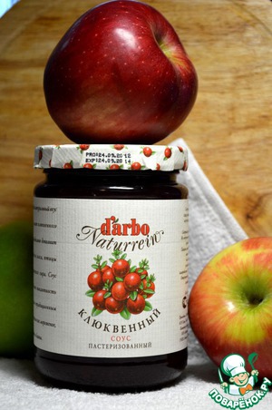 Для начинки нам понадобится соус D'arbo, он прекрасно сочетается с яблоками, имеет ярко выраженный клюквенный кисло-сладкий вкус, очень приятную консистенцию. Конечно, начинка - на Ваш вкус, может быть какой угодно.