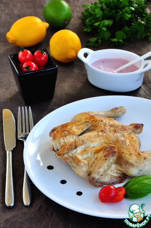 Рецепт «Жареный цыпленок с брусничной заправкой»: