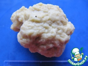 Для приготовления теста для клейковины смешать 50 г муки и 25 мл воды, замесить крутое тесто, оставить на 20 минут, накрыв пленкой.