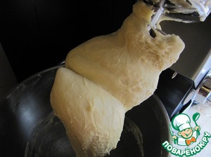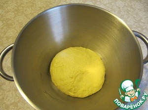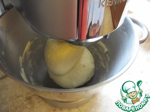 Хорошо вымешанное тесто у меня собирается полушаром вокруг крюка. Если этого не происходит, добавить 1 ст. л. муки, продолжить замес. Главное - не пересыпать муки, но чтобы тесто не было жидковатым. Зависит от качества муки и сливочного масла, размера желтков.