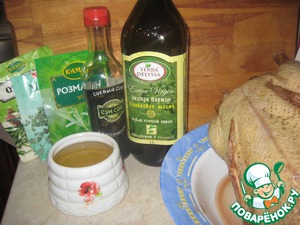 Для начала приготовим маринад для утки. Травки я взяла сушеные по своему вкусу - майоран, орегано и розмарин. Мед жидкий.