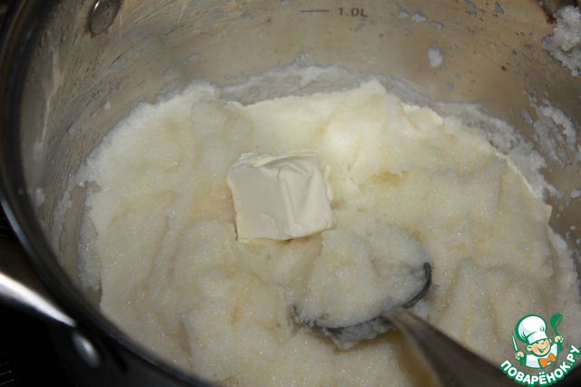 Добавляем соль и сахар по вкусу, небольшой кусочек масла - грамм 30. По вкусу (немного) можно добавить ванилин, но ванильные биточки - на любителя.