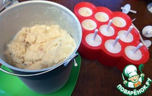 Часть мороженого выложила в специальные формочки для эскимо (у меня шарикообразные формочки для мини-эскимо от фирмы Zoku) и отправила в морозильную камеру.